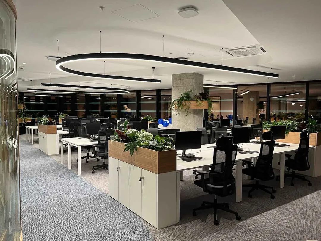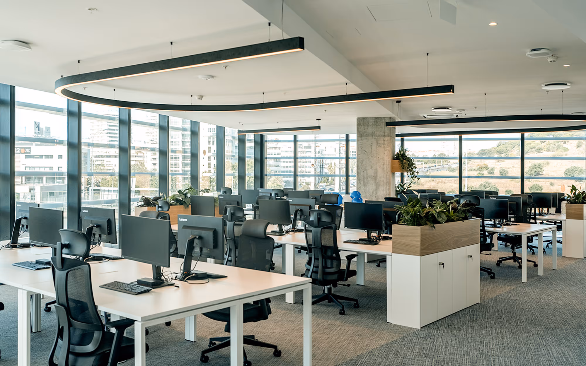 Ambientes inovadores e versáteis, projetados para impulsionar a performance, estimular a colaboração e causar impacto singular em clientes e parceiros. Criamos espaços dinâmicos que elevam a produtividade e fortalecem a imagem corporativa.